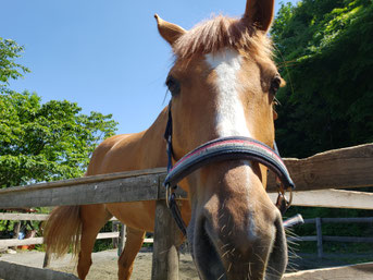 中半血で小柄でエルミオーレ埼玉では若手です。とても人懐っこく、ビギナーレッスン~障害レッスンまで頑張っています。食いしん坊なので良く頑張ったら