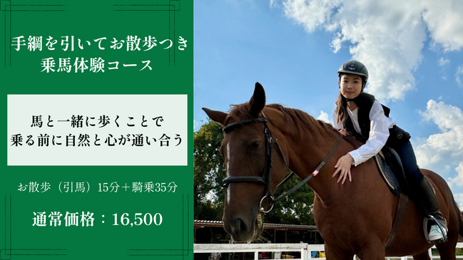 馬と一緒に歩くことで、乗る前に自然と心が通い合う。そんな特別な体験ができるコースです。